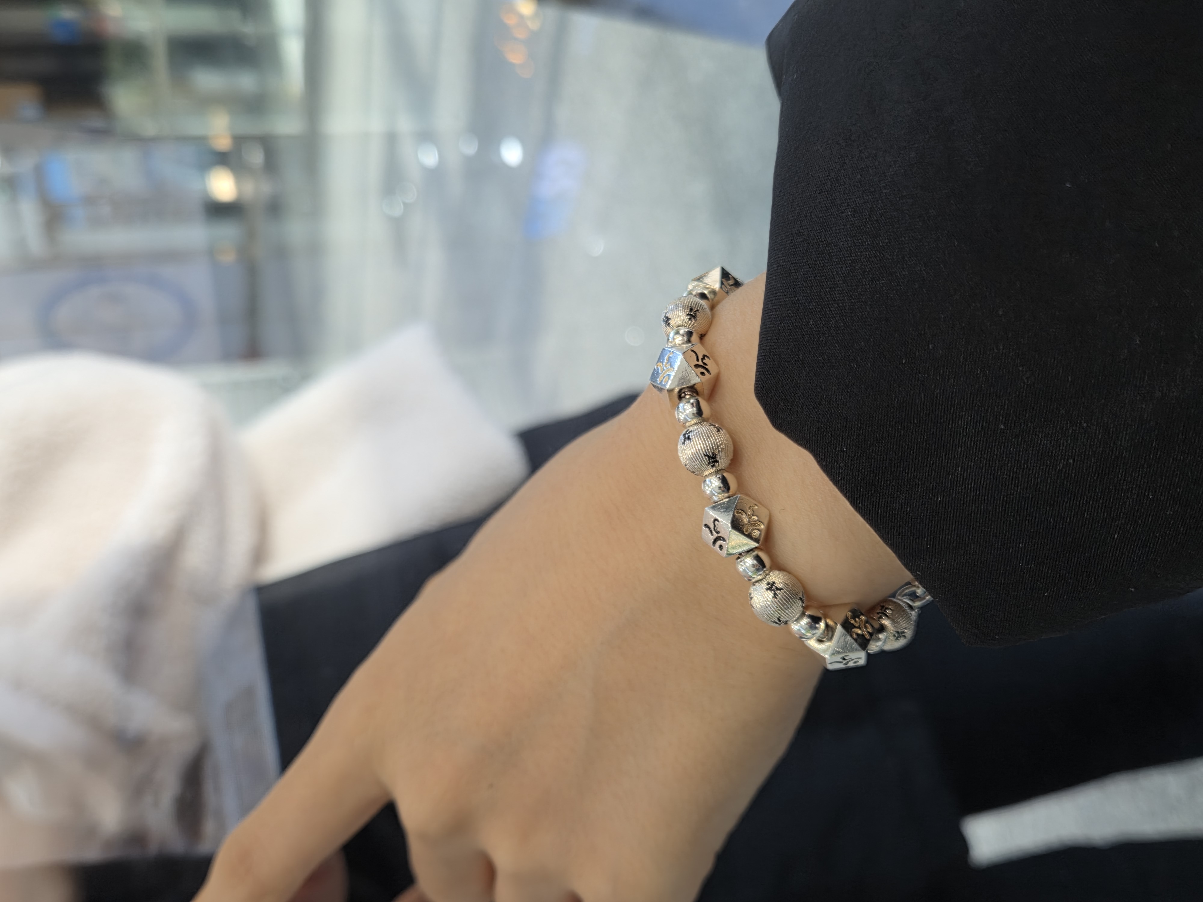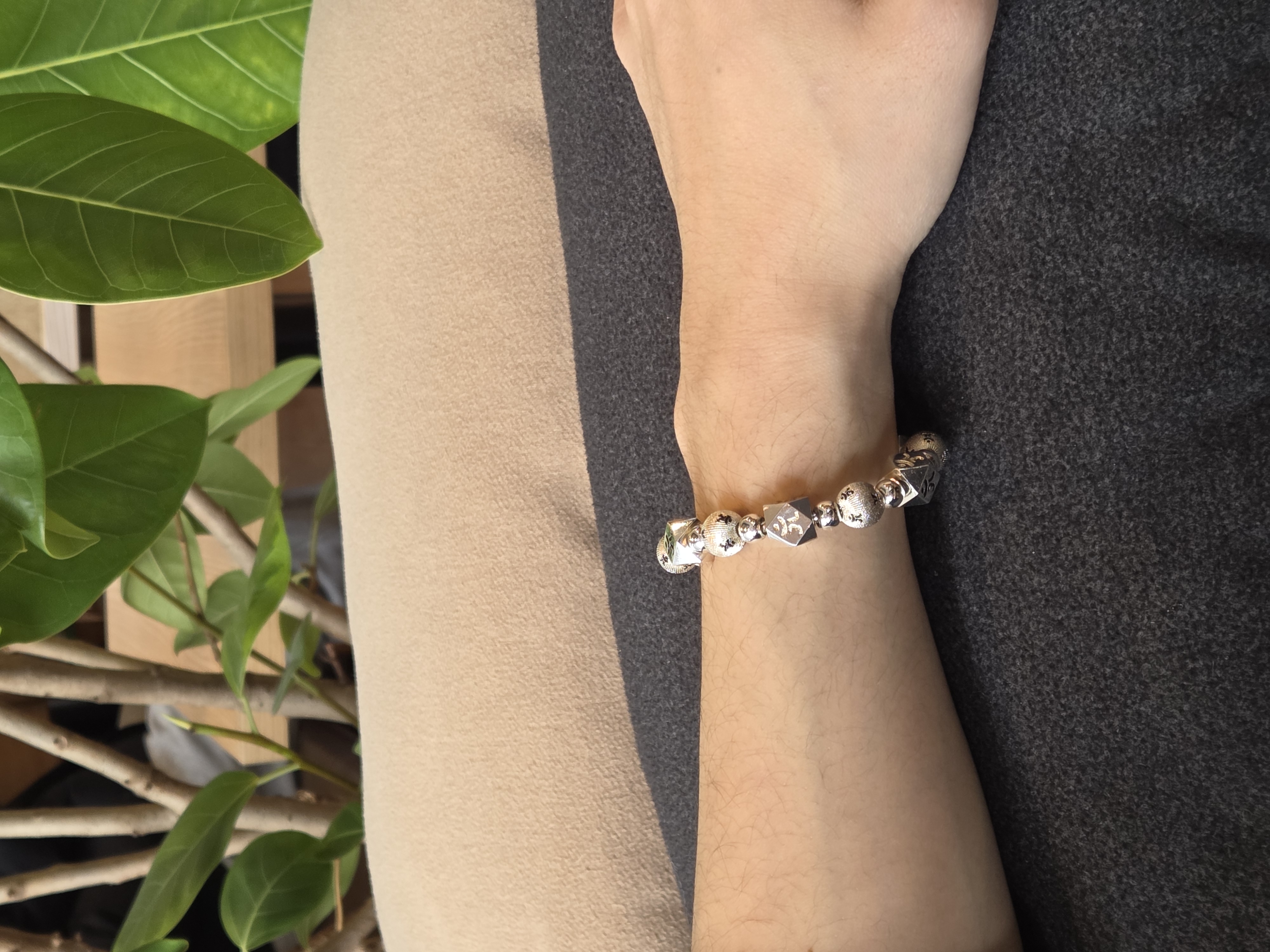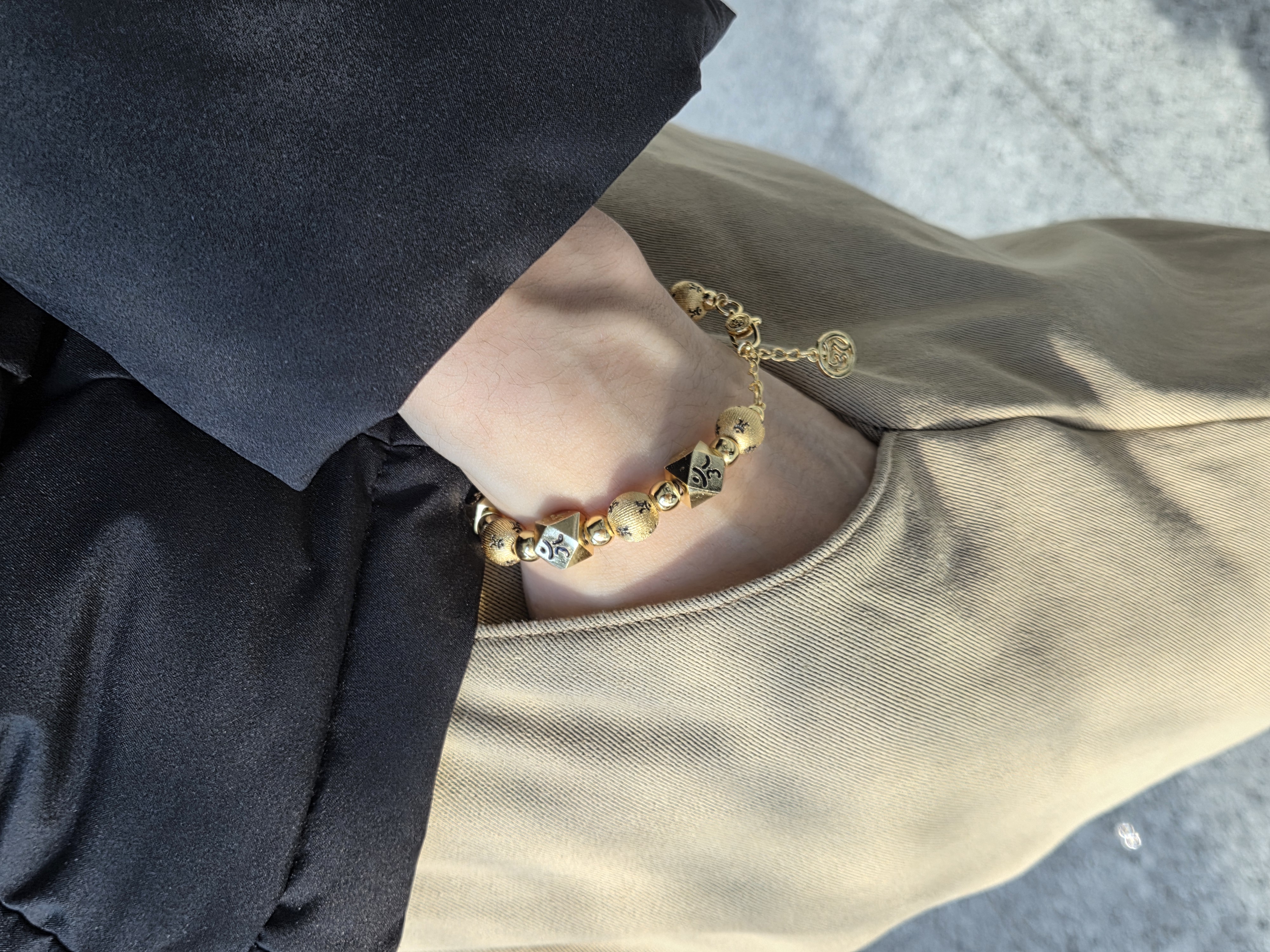 옐로우골드 포인트가 은은하게 빛나는 실버도금 패션 브레이슬릿 218,000원