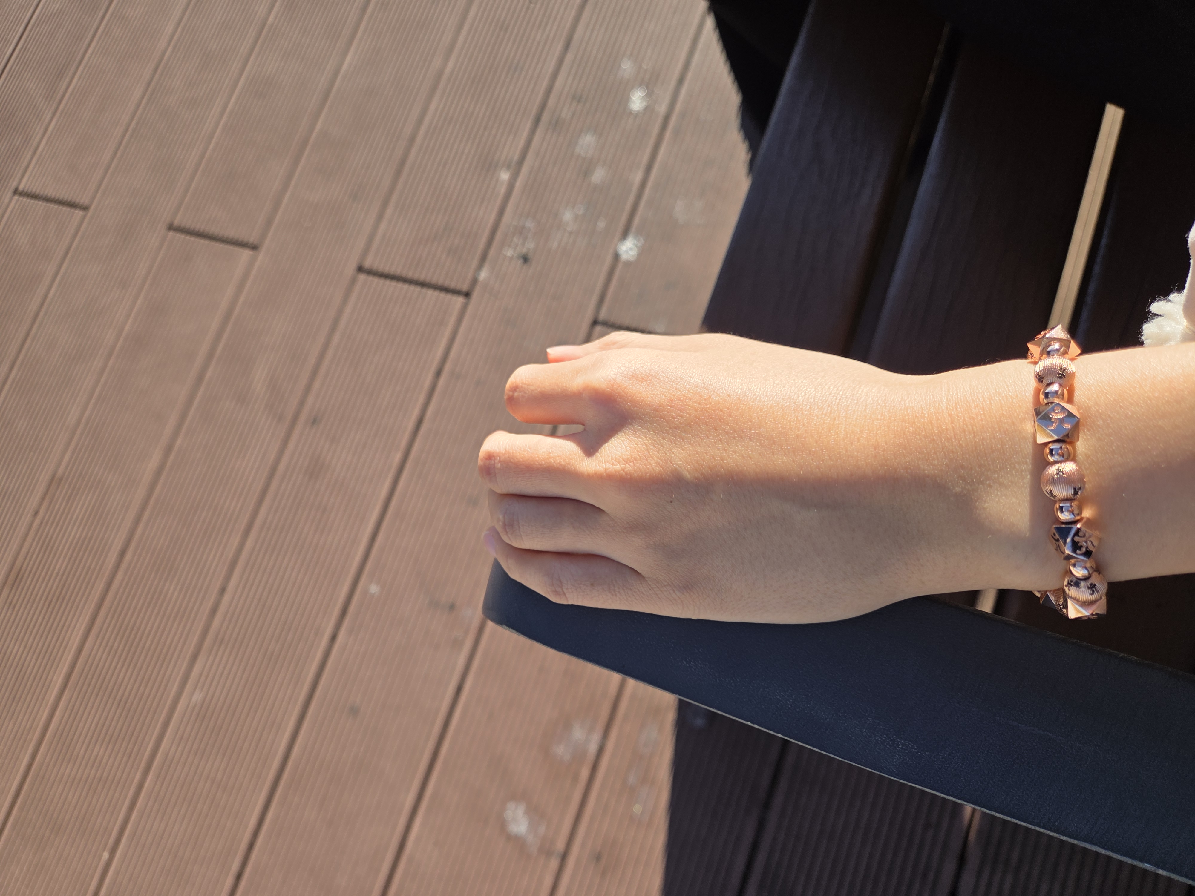 옐로우골드 포인트가 은은하게 빛나는 실버도금 패션 브레이슬릿 > 아이백